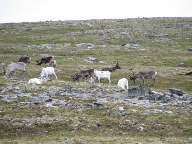 Geschafft – im doppelten Wortsinn. 18.48 km in 6:32 mit 1:30 Pause am Knivskjellodden. Auf dem Hinweg haben wir schönes Wetter gehabt und uns Zeit gelassen. Sabine hat ihr Rentiere vor die Linse bekommen und ich habe die grandiose Landschaft bewundert. Zuerst sind wir keinen anderen Wanderern begegnet, später wurden es mehr. Viele waren wie wir mit Rucksack unterwegs, aber einige hatten nur ihren Fotoapparat dabei – keine weiteren Kleider und nichts zu trinken. Sehr leichtsinnig in einer Gegend, die für einen schnellen Wetterwechsel bekannt ist. Auf dem Rückweg hatten wir dann Gegenwind und Regen – nicht so angenehm und wir waren entsprechend schneller wieder zurück. Auf dem Weg haben wir ein älteres Ehepaar aus Sinsheim überholt. Da wir auf dem Wanderparkplatz noch zwei Stunden auf unseren Bus hätten warten müssen, habe ich sie gefragt, ob sie uns zum Nordkap mitnehmen könnten. Sie konnten und haben uns noch von der Webcam am Nordkap erzählt. Diese dreht sich alle 15 Minuten um 360 Grad und macht eine Rundumaufnahme. Nach einer frisch gebackenen Waffel mit Creme und Erdbeer-Marmelade sowie einem Pot Kaffee haben wir uns dann für die 20:15 Uhr Aufnahme an die Kugel gestellt. Bei der Kontrolle haben wir festgestellt, dass wir zwar zu sehen sind, aber die Kugel zu weit von der Cam entfernt ist um etwas erkennen zu können. Also haben wir uns einen näheren Punkt ausgesucht und es beim 20:30 Uhr Durchgang nochmal probiert. Wer sich das Ergebnis anschauen möchte findet die Aufnahmen unter https://nordkapp.livecam360.com.